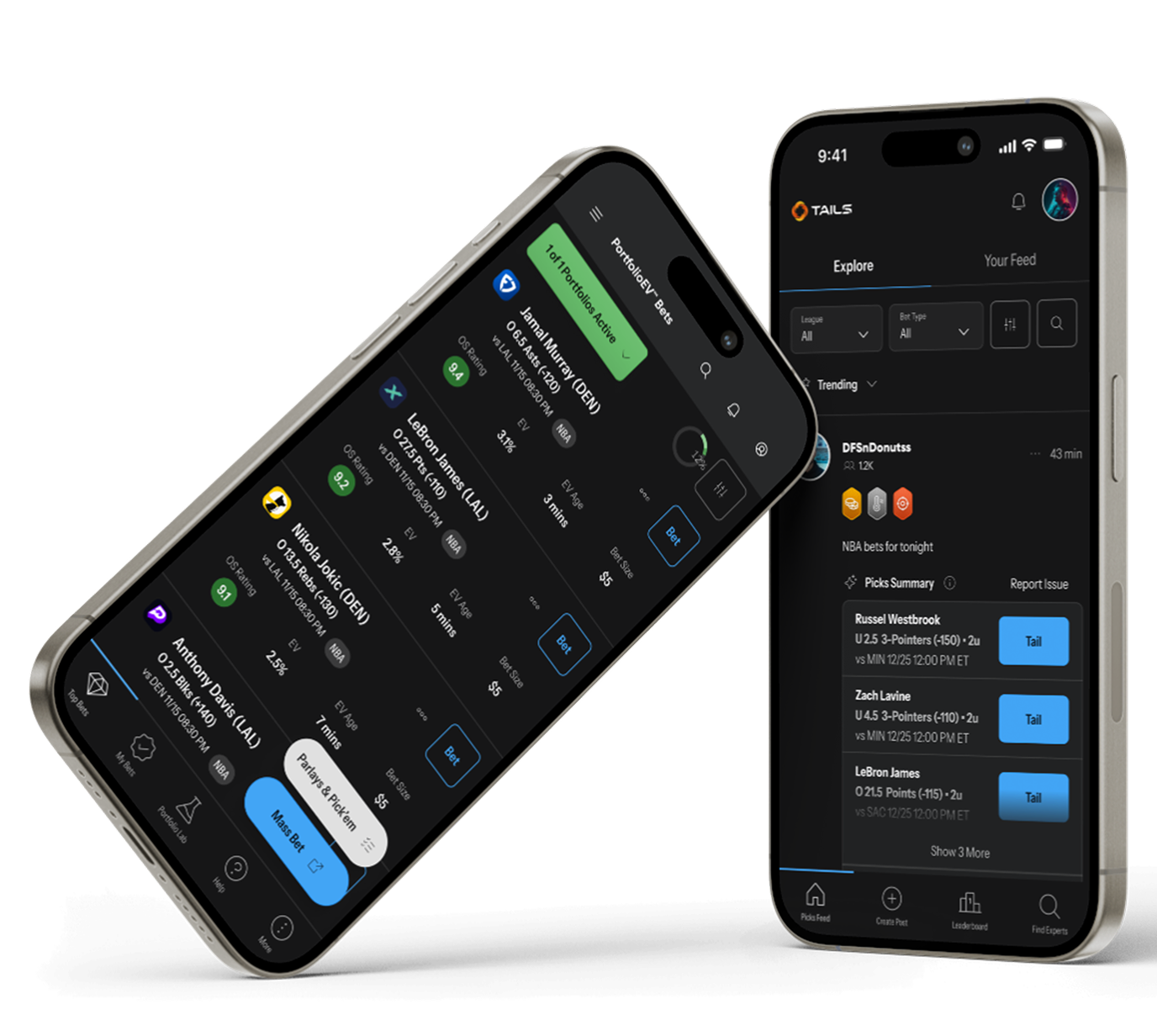 Track and mirror bets recommended by the sharpest minds in sports betting with Tails®. Gain valuable insight into strategic and analytical processes used by insiders thoroughly vetted by our team. Whether you're new to betting or simply looking to enhance your edge – Tails® removes guesswork and helps you level up your game.