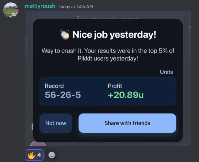 This is just a snapshot of results Portfolio EV users sent in over the weekend. You’ll find a bunch more here, and each weekend our Discord and Twitter mentions are PACKED with screenshots and Pikkit slips of huge profits. So what are you waiting for? Sign up for Portfolio EV FREE today and get your bankroll moving in the right direction!