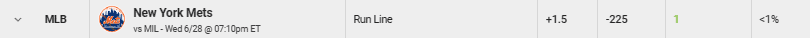 MLB Side: New York Mets +1.5 (-225, BetMGM)