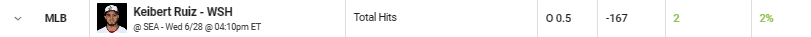 MLB Player Prop: Keibert Ruiz Over 0.5 Hits (-167, BetMGM)