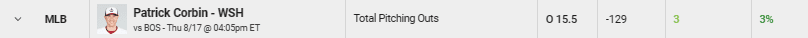 MLB Player Prop: Patrick Corbin Over 15.5 Pitching Outs (-129, Caesars)