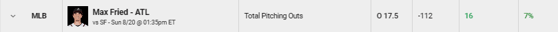 MLB Player Prop: Max Fried Over 17.5 Pitching Outs (-112, BetRivers)