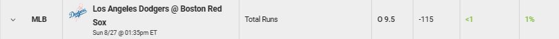 MLB Total: Los Angeles Dodgers vs. Boston Red Sox Over 9.5 Runs (-115, Caesars)