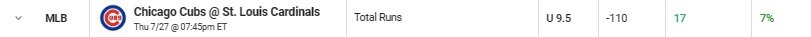 MLB Total: Chicago Cubs vs. St. Louis Cardinals Under 9.5 Runs (-110, Caesars)