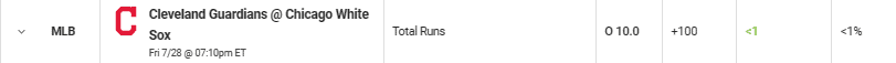 MLB Total: Cleveland Guardians vs. Chicago White Sox Over 10.0 Runs (+100, Caesars)