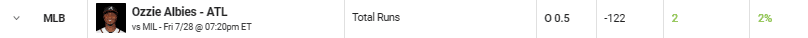 MLB Player Prop: Ozzie Albies Over 0.5 Runs (-122, BetRivers)