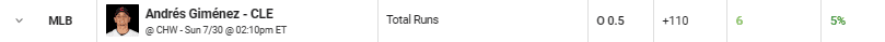 MLB Player Prop: Andres Gimenez Over 0.5 Runs (+110, BetRivers)