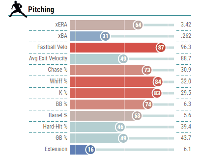 Not only that, but his chase rates and whiff rates are both looking incredibly strong as well as you can see in the statcast data I’ve provided to you from Baseball Savant.