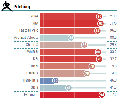 Armstrong has nearly a 30% strikeout rate and has a 30.6% CSW (called + swinging strike rate) — which are both very strong.