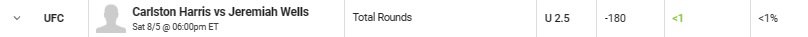 UFC Total: Carlston Harris vs. Jeremiah Wells Under 2.5 Rounds (-180, FanDuel)