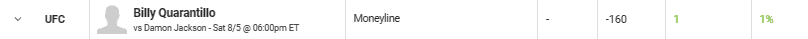 UFC Side: Billy Quarantillo Moneyline (-160, Caesars)