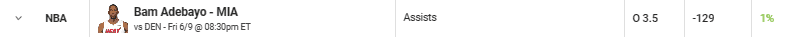 NBA Player Prop: Bam Adebayo Over 3.5 Assists (-105, BetRivers)