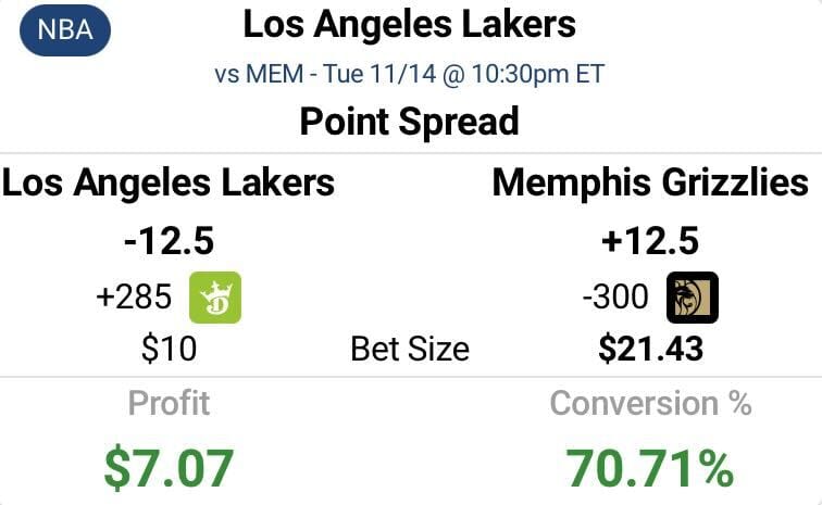 Free Bet Converter Play of the Day: Lakers -12.5 at DraftKings, Grizzlies +12.5 at BetMGM