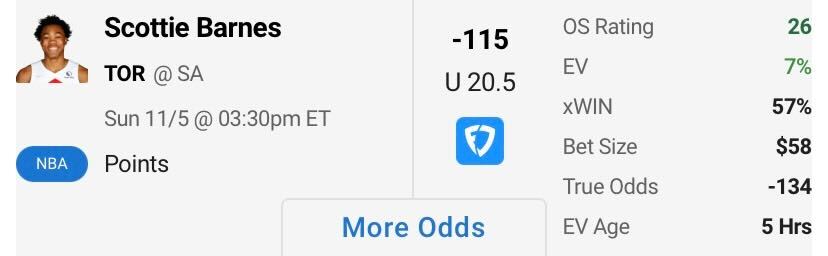 NBA Player Prop: Scottie Barnes Under 20.5 Points (-115, FanDuel)