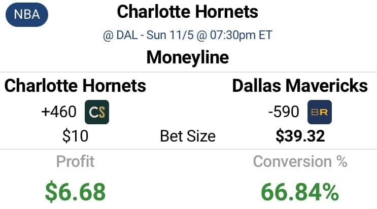 Free Bet Converter Play of the Day: Hornets Moneyline at Caesars, Mavericks Moneyline at BetRivers