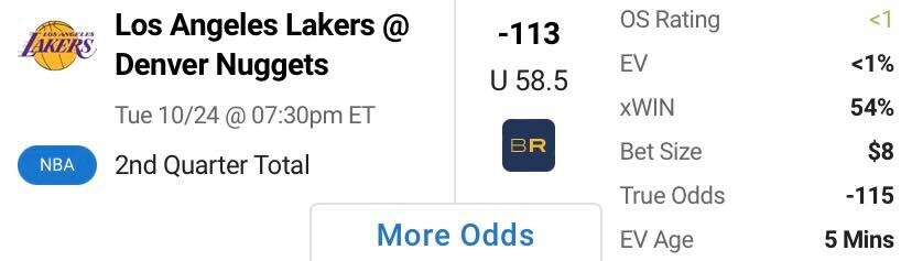 NBA Total: Los Angeles Lakers vs. Denver Nuggets Second Quarter Under 58.5 (-113, BetRivers)