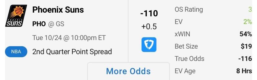 NBA Side: Phoenix Suns Second Quarter +0.5 (-110, FanDuel)
