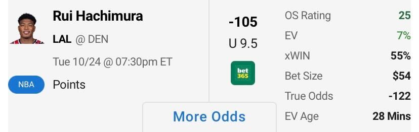 NBA Player Prop: Rui Hachimura Under 9.5 Points (-105, bet365)
