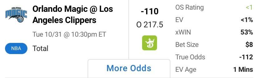 NBA Total: Orlando Magic vs. Los Angeles Clippers Over 217.5 Points (-110, DraftKings)
