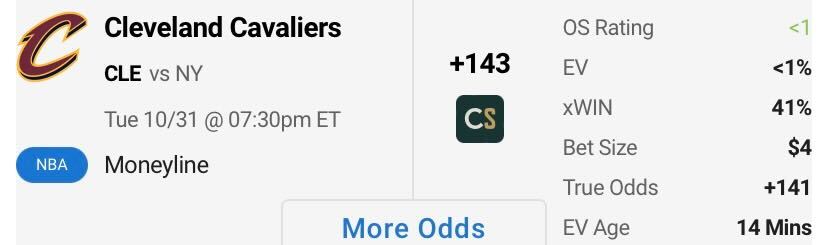 NBA Side: Cleveland Cavaliers Moneyline (+143, Caesars Sportsbook)