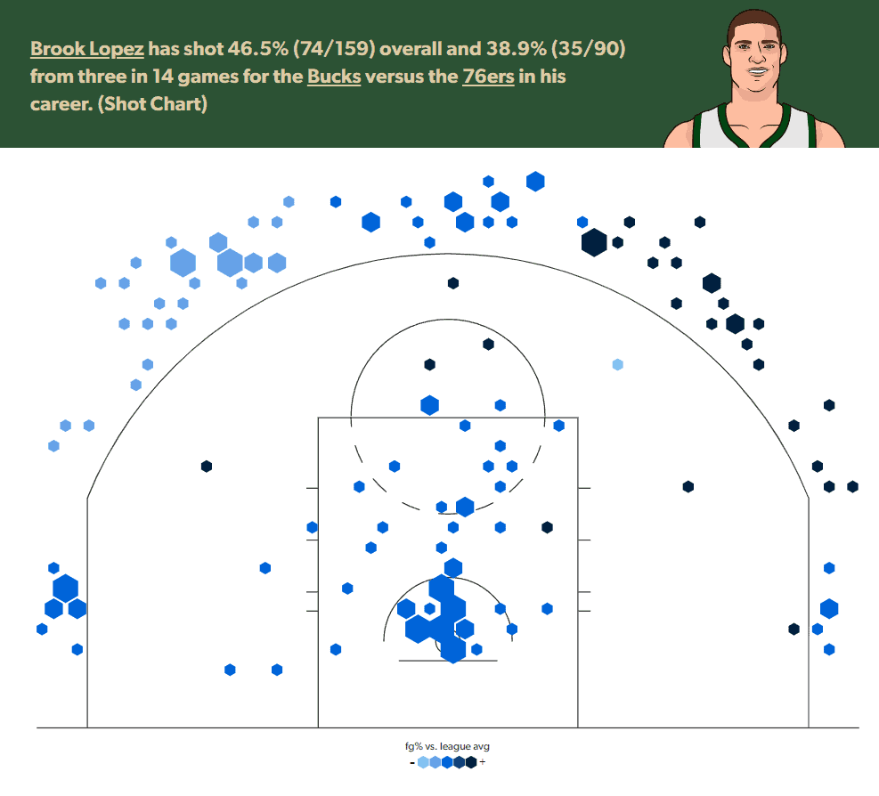 Lopez has historically played well against the 76ers, especially with Joel Embiid at the five. Lopez is averaging 2.5 3-pointers per game against the 76ers since joining the Bucks on a conversion rate of 38.9%. He hit at least a pair of 3-pointers in three of his four meetings with the 76ers last year and is averaging exactly three per game over their last six meetings. Embiid’s lackluster perimeter defense will come back to bite him tonight. Players who may have bailed him out before have more to worry about.