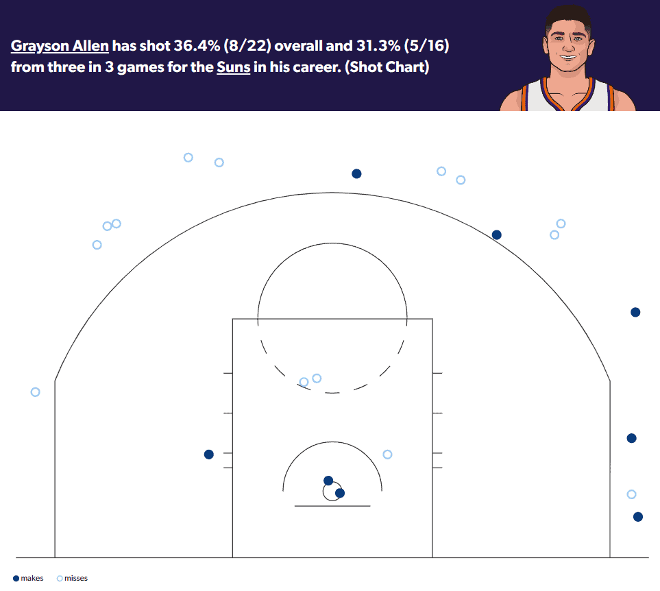 When the Phoenix Suns added Grayson Allen in the Deandre Ayton trade, I doubt they planned on him starting so often early in the year. But with both Bradley Beal and Devin Booker shelved, Allen has had to start alongside Josh Okogie and Eric Gordon. While Kevin Durant provides plenty of offensive firepower, he can’t carry the whole offense, even against a fun-but-bad San Antonio Spurs team.
