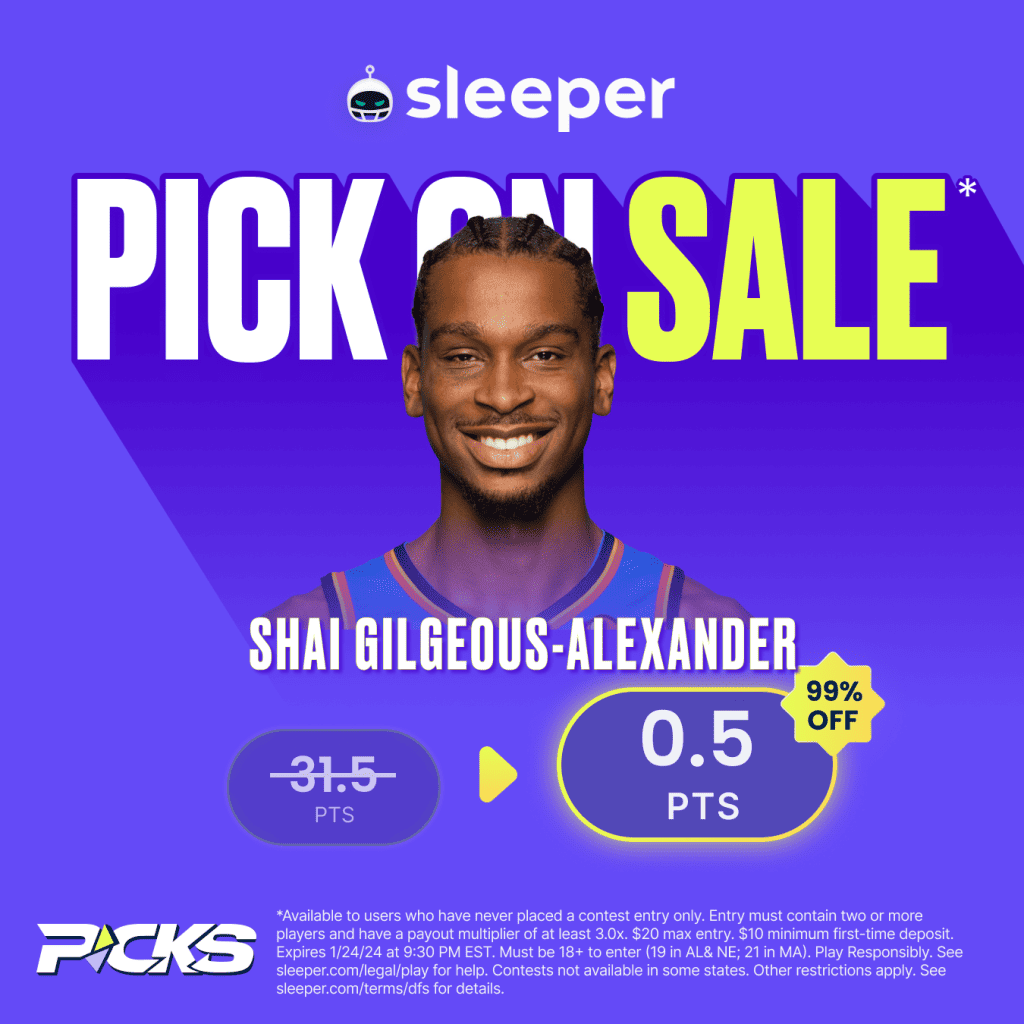 OddsShopper isn’t just about betting — we also have premium betting models for daily fantasy pick’em apps and sites as well! One of the best in the industry is Sleeper Fantasy, and right now they are offering a sweet pick on sale for new customers — Shai Gilgeous-Alexander more/less than 0.5 points! With this play, you have an easy start to your pick’em entries with Sleeper. Want help building out the rest of your picks? Head over to OddsShopper’s Positive EV Tool and find the Sleeper plays most likely to boost your bankroll!
