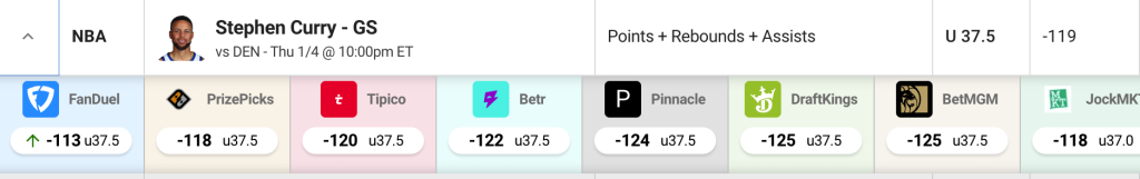 Stephen Curry M/L 37.5 Points + Rebounds + Assists