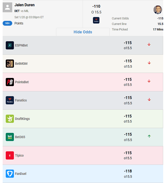 The Detroit Pistons and Milwaukee Bucks will kick off Saturday’s NBA slate at 3 p.m. ET in Michigan. The Pistons have managed not to start another embarrassing losing streak but are still just 4-37 this year, while the Bucks are sitting pretty at 28-13. This one is expected to get out of hand quickly, as Milwaukee is a 13-point favorite. Let’s dive into the Jalen Duren player prop odds to identify the best bet for Saturday’s Bucks-Pistons matchup. If you’re hungry for more action, check out the rest of our NBA player prop picks, our NBA betting tools or our NBA betting promos. Also, you can always check out my guide to NBA player prop betting as well!