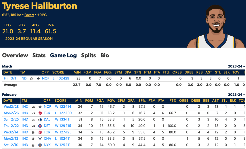 In 21 games this season in which he plays at least 34 minutes, Haliburton has reached at least 12 assists 16 times. He’s also recorded at least 12 assists in five of his last eight games. After playing just 23 minutes on Friday night against the Pelicans, Haliburton should be fresh and ready to go for a full workload on Sunday.