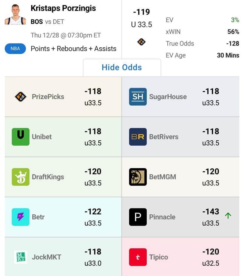 Are you having trouble making progress with your NBA pick’em plays? Well, we have the answer for you, and you can start seeing an upswing in your picks TODAY! Simply sign up with OddsShopper Premium for only $49.95 a month and immediately gain access to all sorts of +EV NBA picks tonight — if you sign up now, make sure to use the promo code CHEATSHEET at checkout to get 20% off! For now, we will give you just a taste of what OddsShopper Premium has to offer for the best DFS apps on Thursday, Dec. 28: One pick each from PrizePicks, Sleeper Fantasy and Betr Picks. We will also show how the picks for each pick’em site compare to projections set by betting markets and other DFS apps so you can see how the value stacks up!