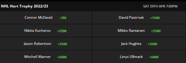 It is also worth noting that Bruins goaltender Linus Ullmark has the best MVP odds at the position and is a solid frontrunner for Vezina, which may also dip into Pastrnak’s Hart chances since voters may not even view him as the most important player on his own team. That said, since there is no value on betting McDavid right now, Pastrnak is the only guy worth a look for long shot odds as of the All-Star break.