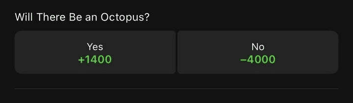 An octopus has been scored 175 times since 1994. It’s only recently grown in popularity as a Super Bowl prop bet and is rarely — if ever — offered during any other part of the season.