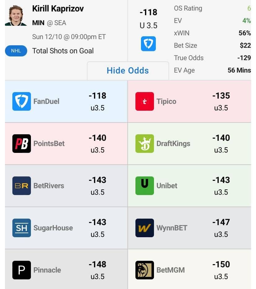 Are you having trouble making progress with your NHL bets? Well, we have a solution, and you can start seeing a massive upgrade to your wagering TODAY! Simply sign up with OddsShopper Premium for only $49.95 a month and immediately gain access to all sorts of +EV NHL bets. For now, we will give you just a taste of what OddsShopper Premium has to offer with the best NHL picks based on their expected ROI, and right now there is betting value up and down the NHL slate. Let’s get into the picks for Sunday, Dec. 10: One side, total and NHL player prop. Plus, we will take a look at a couple of OddsShopper’s FREE tools — the arbitrage bet and Free Bet Converter play of the day!