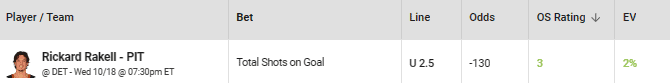 NHL Player Prop: Rickard Rakell Under 2.5 Shots on Goal (-130, bet365)