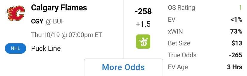 NHL Side: Calgary Flames +1.5 (-258, DraftKings)