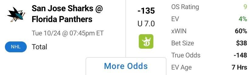 NHL Total: San Jose Sharks vs. Florida Panthers Under 7.0 Goals (-135, DraftKings)