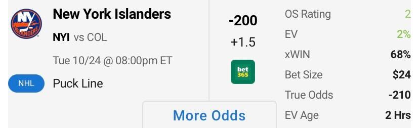 The NHL season is here! And now is a great to time to get into some NHL bets with the help of OddsShopper. Understanding the markets and conducting thorough research on the games is essentially to maximizing ROI, and OddsShopper analyzes vast amounts of data and gathers the best NHL picks for the day into one easy-to-use place. Let’s take a look at some of the best [os_keywords keyword=”NHL bets” sport=”NHL”] out there right now for Tuesday, Oct. 24, picking one +EV side, one total and one player prop for today’s slate.