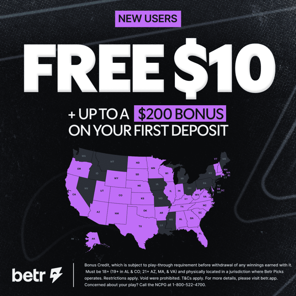 - Betr Picks Promo Code: Free $10 + A 50% Deposit Match, up to $200 Bonus! – MUST USE PROMO CODE ODDS5